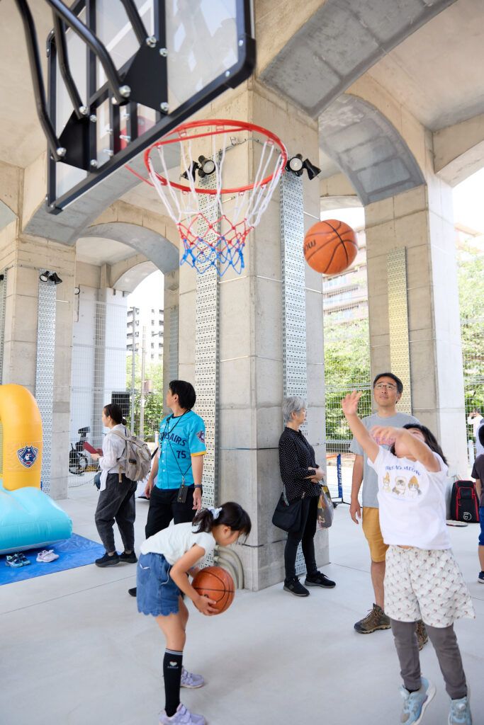 こうして、2025年6月1日、京急線黄金町駅高架下に『黄金町みんなのひろばロックカク』がオープン。エリア内はフリースペースとボール遊びができるスペースに分けられ、ボール遊びスペースにはバスケットゴールも設置されました。
