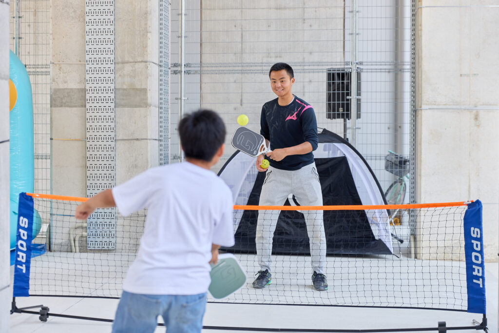 オープン同日に開催されたオープニングセレモニーは、ワークショップに参加した地域住民らが企画・運営を主導。建築を学ぶ地元大学生がサインづくりに関わるなど、地元の若手活躍の機会に。また、「子どもたちがスポーツを身近に感じられる場所にしたい」という地域住民らの思いから、地域のスポーツ選手による体験イベントやワークショップを開催しました。