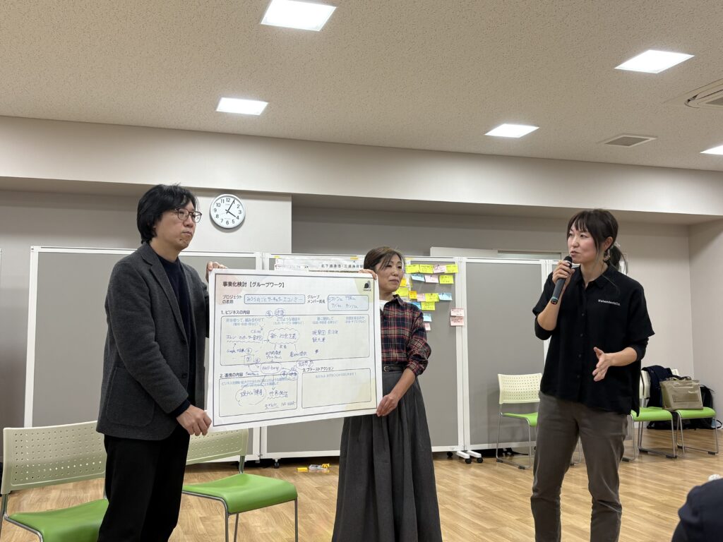 発表されたアイデアには、三浦の自然や食、漁業を大切にしたい個人や企業が集まり、地域から世界へ循環型の事業を広げる「三浦まるごとサーキュラーエコノミーファンド(現代版陣屋)」や都内のスタートアップ企業の社員が働きながら滞在できる施設を整備し、漁業や農業、先端技術の実証実験や生産物販売を行う「域外マネーを呼び込む長時間滞在拠点の開発」。第二の人生で漁業に挑む人々の拠点づくりを目指す「漁業が一番近いまち~推し漁師プロジェクト~」などがあり、参加者一人ひとりの事業やアイデアを掛け合わせ、地域資源を最大限に生かす多彩な事業の芽が見えてきました。